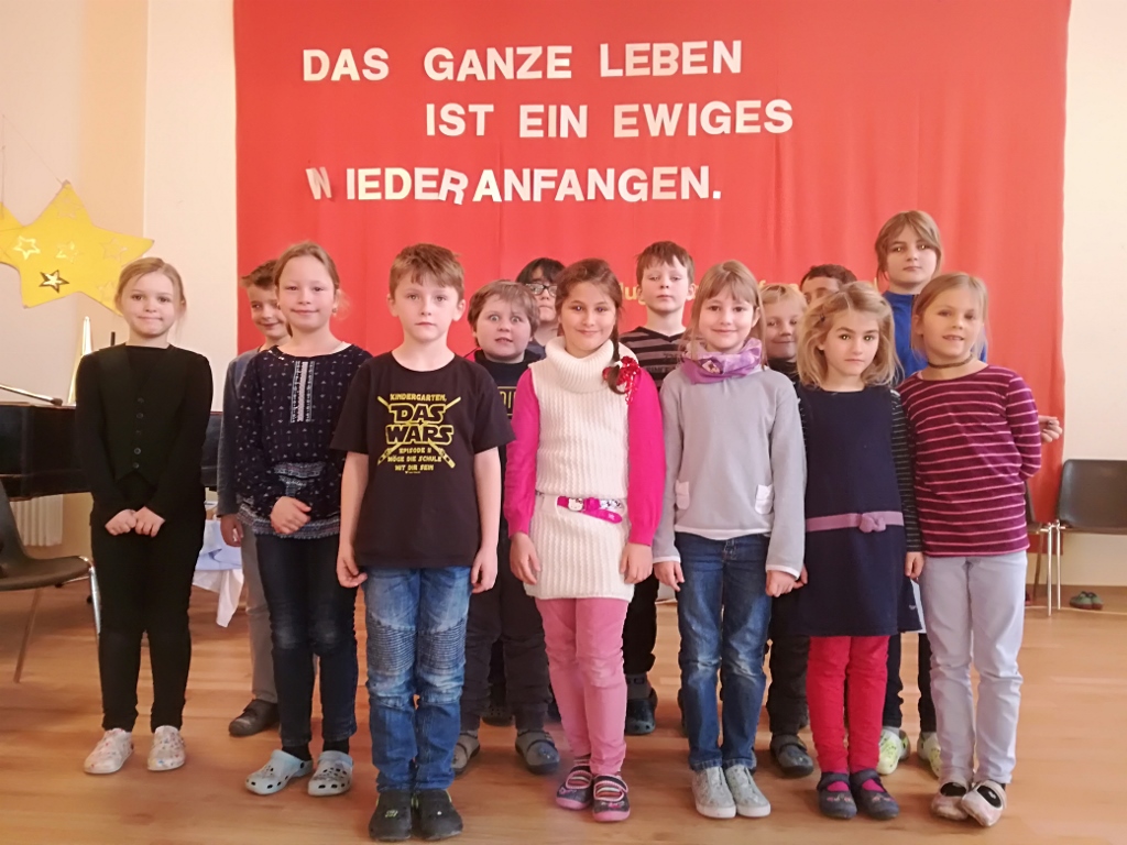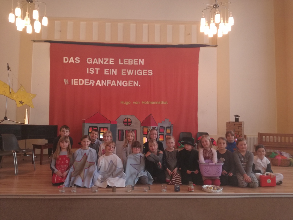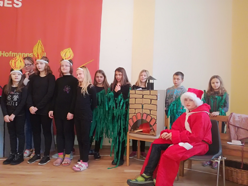 In der Aula unserer Schule treffen wir uns jedes Jahr zur Weihnachtszeit und singen, spielen und tanzen gemeinsam.