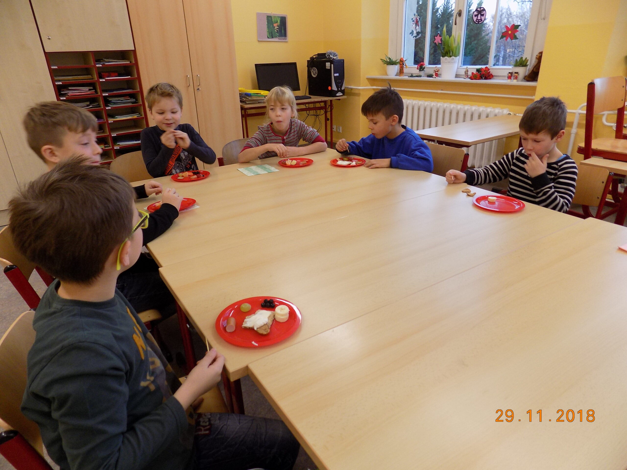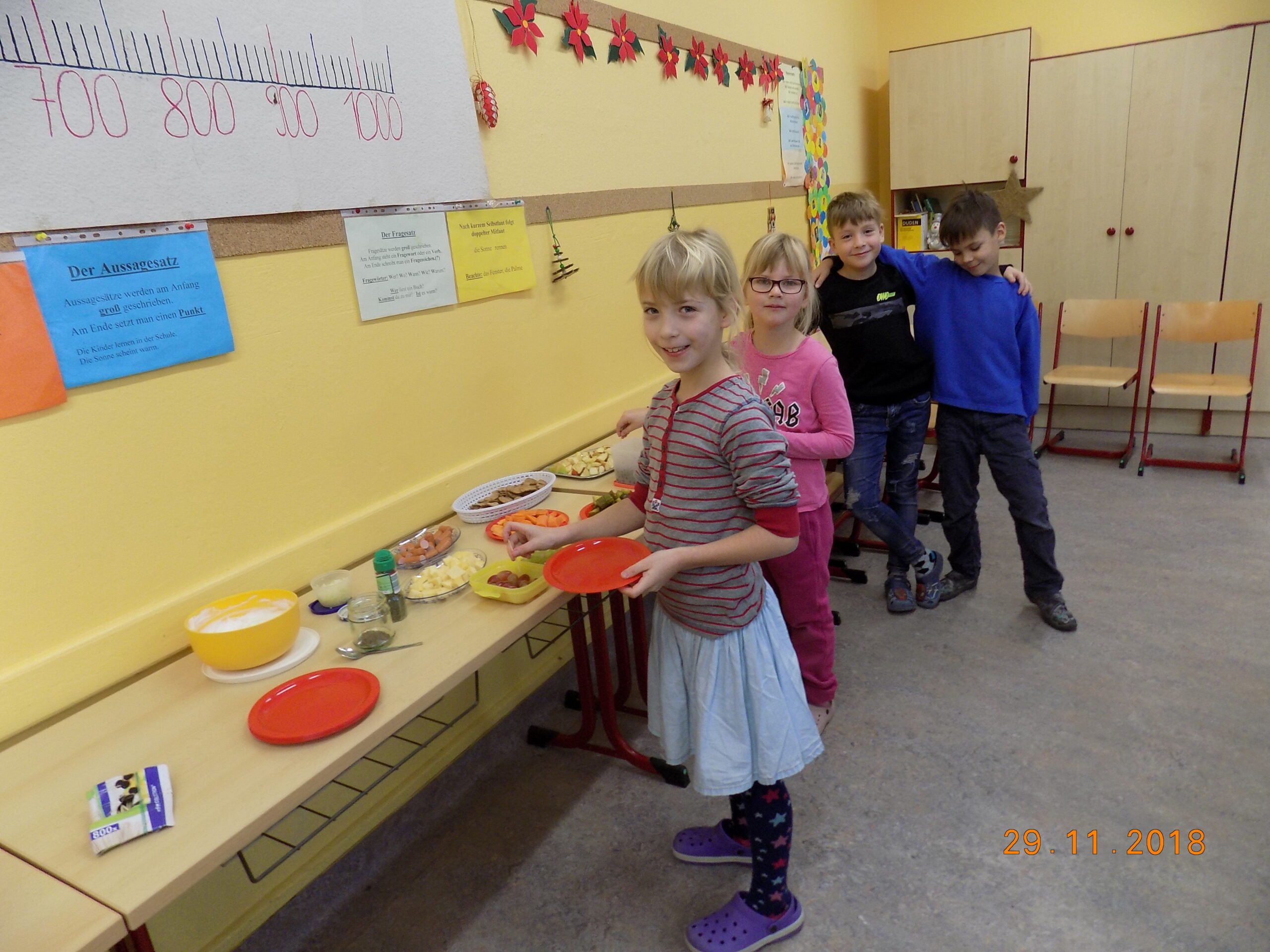 In der 2.Klasse bereitete Frau Schröter mit den Kindern ein gesundes Frühstück vor.